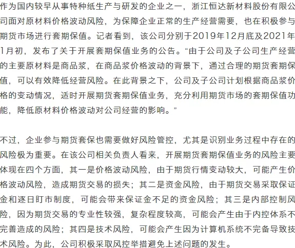 原料價(jià)格波動(dòng)大紙廠套保需求顯著