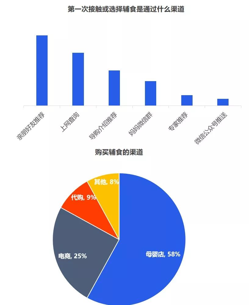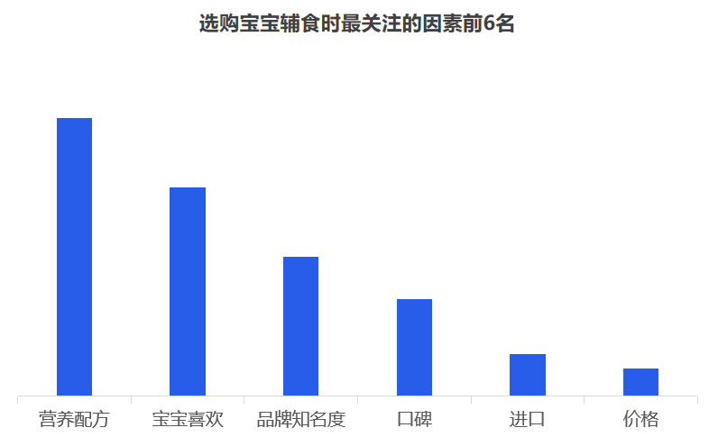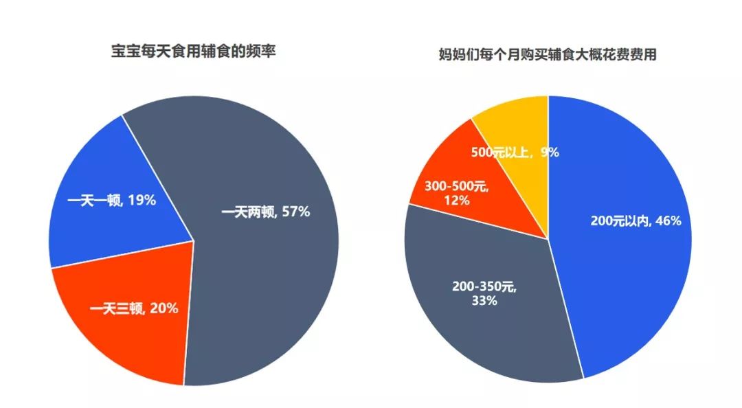 但是對于品牌而言,最重要的是洞察需求,一個好的洞察,一定是清晰揭示消費者的傾向,暗示了一個市場機會。究竟品牌入局輔食的機會有多大,媽媽們是如何看待輔食的? 從當前的嬰幼兒用品的采購情況來看,媽媽負責嬰幼兒用品的采購,用戶占比超七成。奶爸也會經常協助寶媽,參與到嬰幼兒用品的采購活動中,用戶占比為41.7%。 從近一年的百度指數來看,目前關注輔食最突出的地域是廣州、浙江、江蘇、山東、北京等,可見,當前一二線城市的消費者對輔食的認知教育有所提高,但是低線城市的消費者對寶寶輔食的添加還不重視。 其次,從年齡段來看,“30-39歲”的消費人群對輔食的關注度最高,而在這其中,女性對輔食的關注度遠高于男性。 2019年母嬰行業(yè)觀察通過線上調研近10000人數的家長進行了輔食調查,其中80后占據24%,85后占據26%,90后44%,95后4%,對輔食的態(tài)度如下: 1、幾乎所有的媽媽都認為有必要給寶寶添加輔食,并且有一半的媽媽認為要在6個月時添加,而有32%的媽媽認為在6個月-1歲開始添加,還有16%的人在6個月以前就添加輔食。 2、大部分寶寶的輔食來源都是“購買與自制”相結合,而在購買輔食時,媽媽們購買最多的類型依舊是米粉,其次則是餅干、磨牙棒等小食品、營養(yǎng)面等。 3、互聯網與社交圈對媽媽的購買決策權的影響力較大,據調查顯示,媽媽們第一次接觸或選擇輔食大多都是通過親朋好友推薦,上網查詢等。當然消費者在購買嬰兒輔食的渠道選擇上,其實與奶粉并無不同,為了保證產品的質量和安全性,同時也為了可以得到育嬰專家的指導和幫助,消費者更傾向于在專業(yè)的母嬰用品連鎖店或主流電商平臺購買食品。 4、隨著85后、90后新生代父母的崛起,他們與父輩的消費觀念并不相同,不再執(zhí)著與于進口與價格等,而是開始關注是營養(yǎng)配方,重要的是寶寶喜歡。 5、對于寶寶而言,自添加輔食開始,都是與奶粉喂養(yǎng)相結合,目前超一半的寶寶每天食用輔食的頻率都是一天兩頓。當然這在一定程度上也決定了每個月在寶寶的輔食上的花費是多少,從月消費來看,可以明顯看出200以內的將近半數,當然也可以看出花費在300以上的有21%,可見,對于嬰兒食品這個特殊的品類,以及嬰幼兒這個特殊的消費人群,消費持續(xù)升級仍然明顯。近兩年來,嬰幼兒輔食高端化、有機化趨勢明顯。 近幾年來,越來越多的媽媽意識到輔食的重要性,隨著我國居民可支配的收入不斷提高,消費者投入了更多的關注給自己的孩子,作為寶寶的第二餐,消費者愿意投入更多費用,使用周期會不斷變長,且更注重輔食產品的品質和質量。可見隨著消費水平的提升,年輕父母對于對孩子的飲食質量、飲食營養(yǎng)的投入更加重視,會更追求高附加值、高品質的輔食,中國輔食市場會繼續(xù)高速發(fā)展。