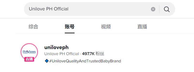 目前該品牌賬號在TikTok獲得近50萬粉絲,#unilove獲得4000萬播放,#unilovequalityandtrustedbabybrand獲得8000萬播放,#uniloveph獲得5980萬播放。